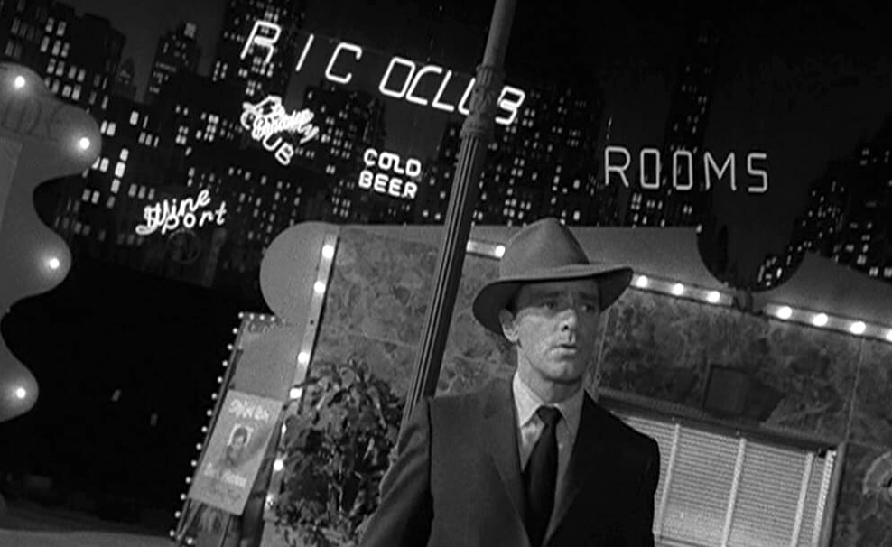 "The Four of Us Are Dying" is not the best episode of the series, instead it's merely a fun romp where you get to see a real jerk get what he deserves for messing around and flying too close to the sun with his abilities. The episode is unique in that it's clearly filmed on a soundstage with phony big city backdrops and weird neon signs that otherwise could not logically hang in this manner outside. I might think it was by design - a fake town for a man who is faking his way through it, assuming identities of others. It fits the theme of the episode to a tee. It's not one of my personal favorites, but is still one that I will stop and watch if it pops up in a marathon.