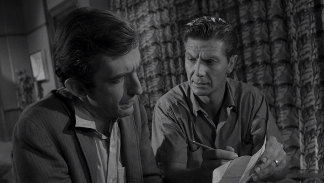 Fritz Weaver, in the first of two performances in the Zone, portrays William Sturka, a military scientist for the government. His job is to help the creation of devastating weapons that when used will cause the eradication of their enemies. Because he's a man of decency you can see how the job wears away at him, living with the knowledge that things are about to get very bad and carrying the guilt of his work. In fact, according to his creepy fellow employee, Carling, the bombs are dropping within 48 hours. He states this with the kind of glee that makes things even more unsettling, like he's a spectator, not a future victim. Edward Andrews stars in another TZ in the troubled season five, but his turn as Carling is the unsung performance of this episode, providing the role as antagonist for the faceless government they work for. More or less, he's a narc looking for those who are not loyal to the regime, and appears at real inopportune times to foil Sturka and his friend, Jerry Riden, played by Joe Maross, who also appeared in a second Twilight Zone later on.