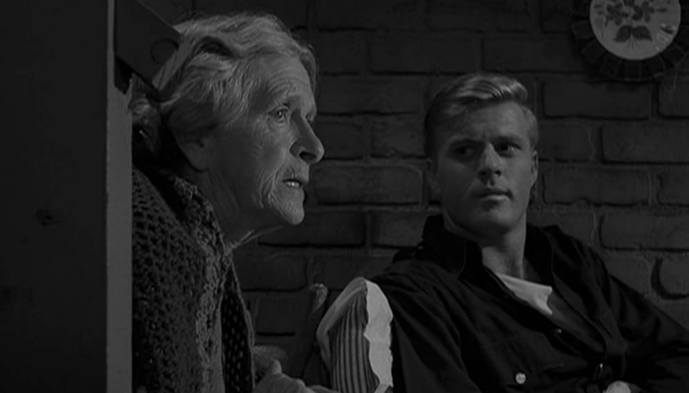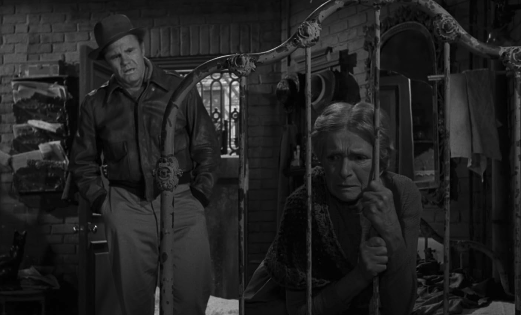 Gladys Cooper - who would appear in two more Twilight Zones, including one of my all-time favorites, "Night Call" - stars as Wanda, a frail old woman very much afraid of her mortality. Outside her dilapidated apartment, she hears a commotion and finds out a police officer named Harold Beldon has been shot and he begs her to let him in for his safety. She initially refuses because she is, again, very afraid of death, and believes it comes in many forms, including possibly a handsome cop played by Robert Redford. Geez, I hope this isn't foreshadowing! Ultimately, she relents and when she doesn't die immediately, she lets her guard down and the pair discuss her fears while he recovers from the shooting.